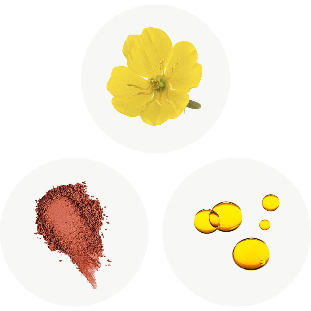 Olio di enotera (Oenothera biennis), capsula molle: gelatina, glicerina e acqua.